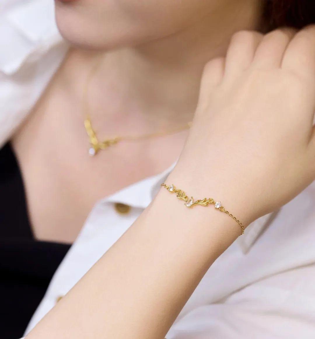 鹿角点缀的氧化锆光泽感非常好,点缀在金色之间,摇光芒曳,拥有迷人的光感。
