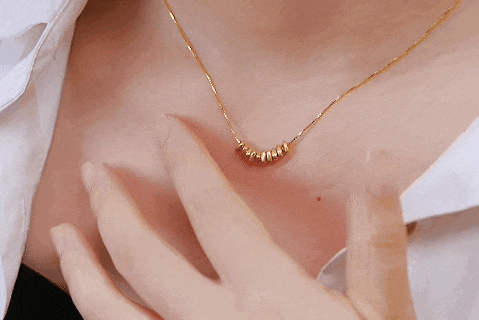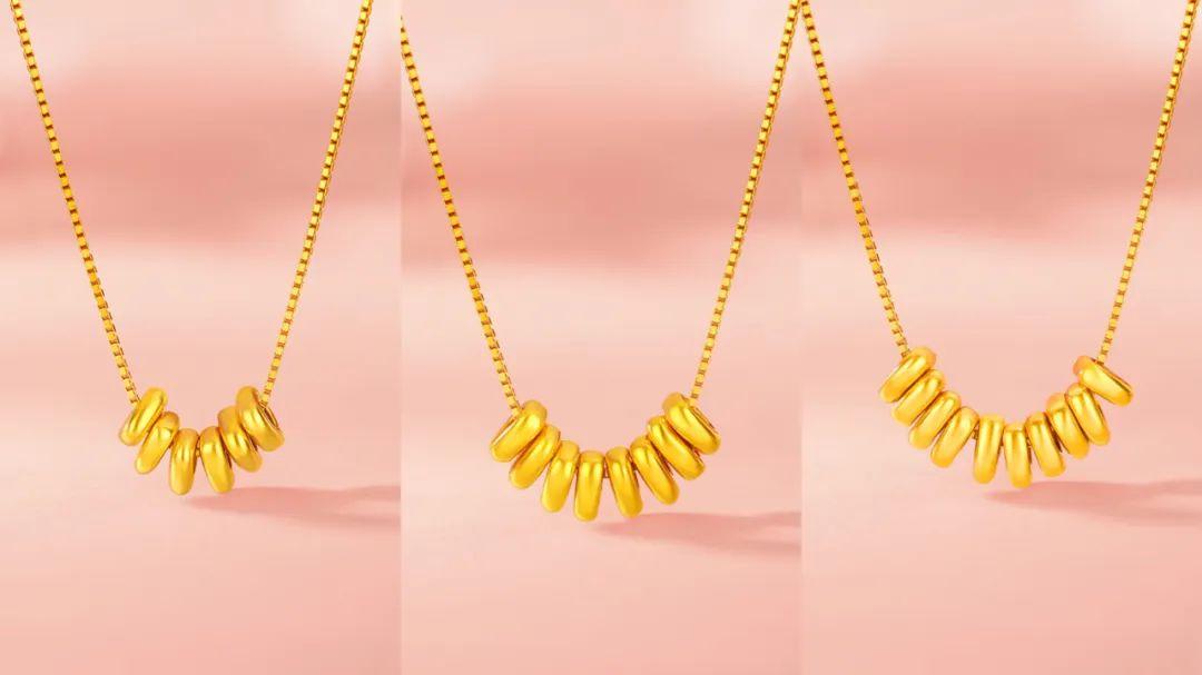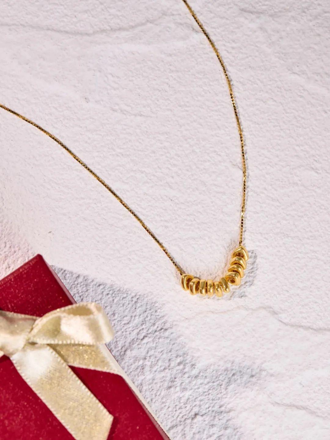这套吊坠是十颗小金珠的设计,闪耀于颈间,一眼吸睛。