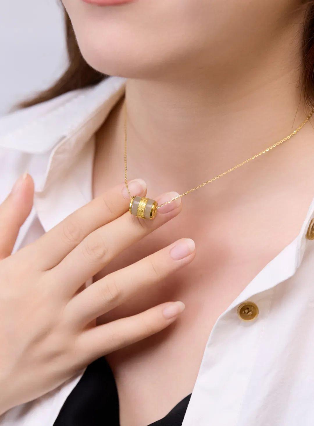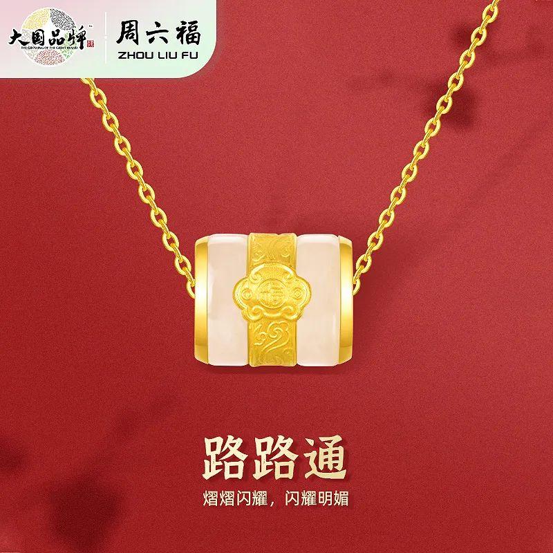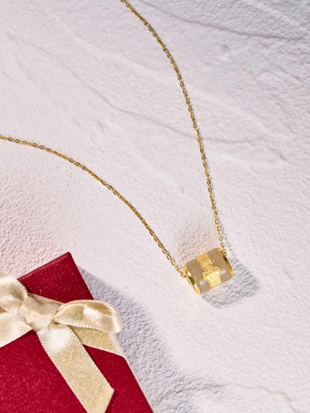 如果喜欢更国风的款式,可以选择这款足金+和田玉的路路通吊坠。