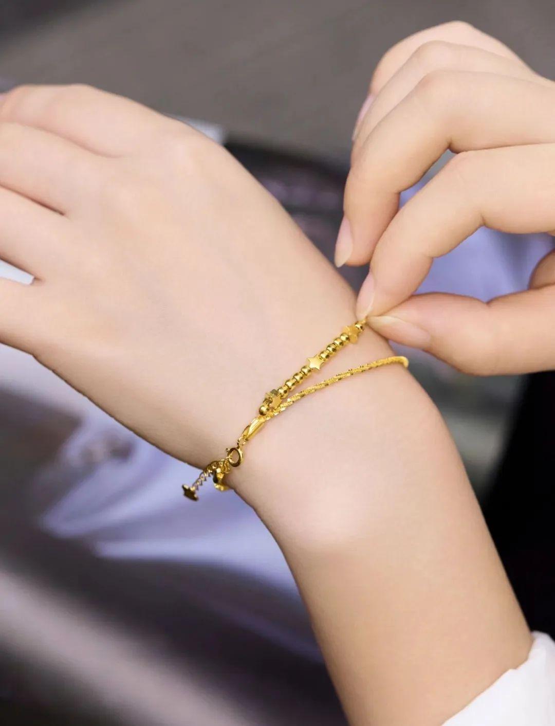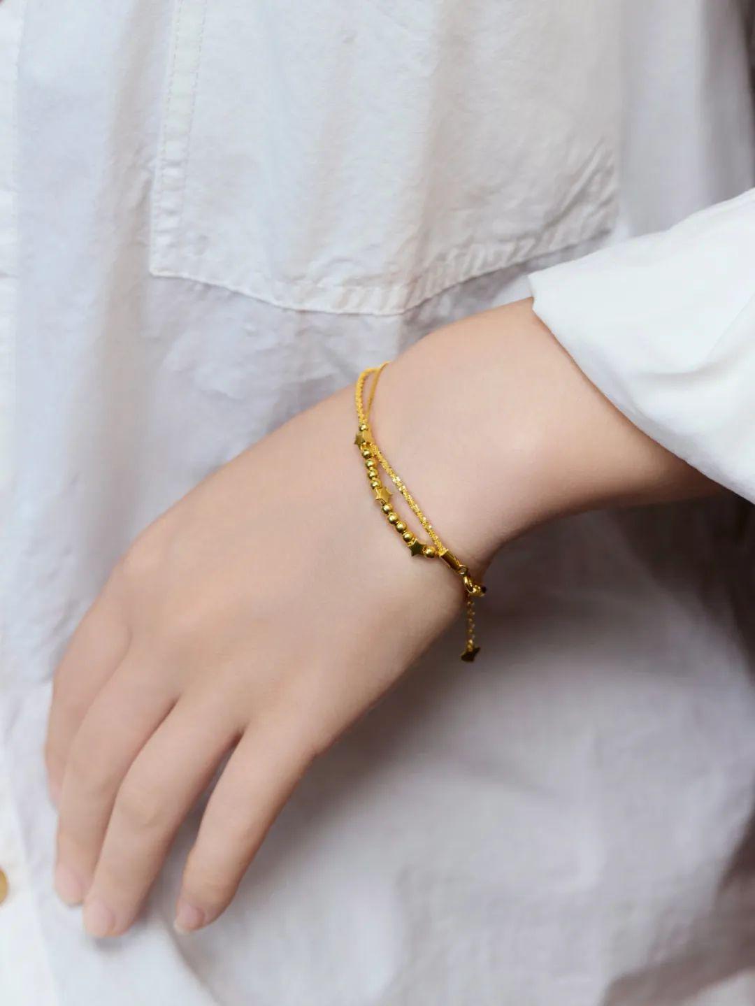 我特别喜欢周六福这次的几款手链,不用我们自己搭配,它设计就是叠搭两层的款式,很符合现在大家的审美。